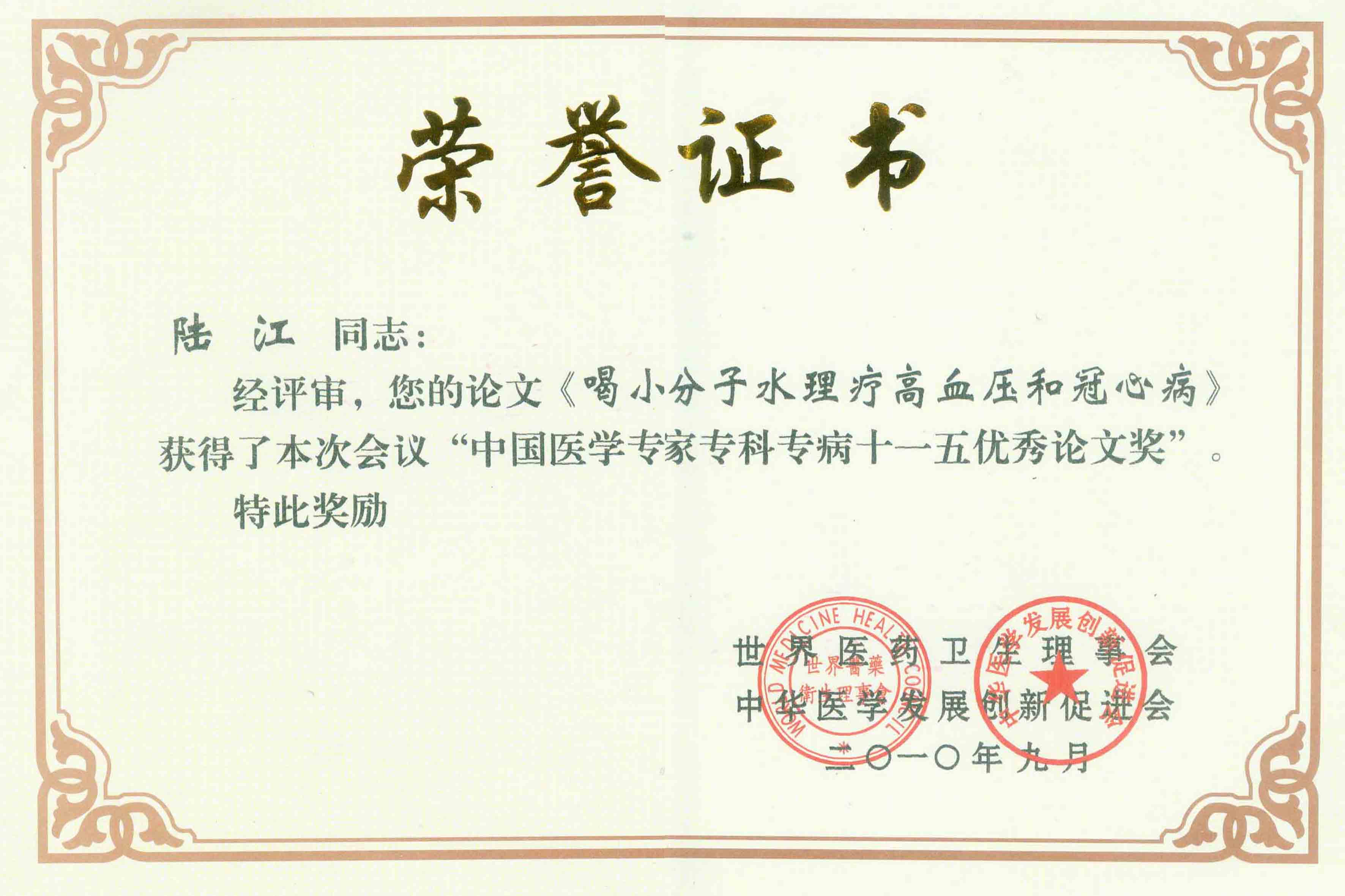 一、創造了在家在職場使用方便的微小分子團水器具。在世界上首先用此理療方法,大規模地成功地逆轉和消除動脈粥樣硬化,確實祛俆高血壓和冠心病與糖尿病,使患者恢復動脈和心臟及胰島的健康,可消除因細胞缺水使器官衰弱而形成多種器官的缺水性病癥,并使健康人可預防和減緩動脈粥樣硬化,減少心腦血管病,具有重大的社會經濟和戰略意義。
